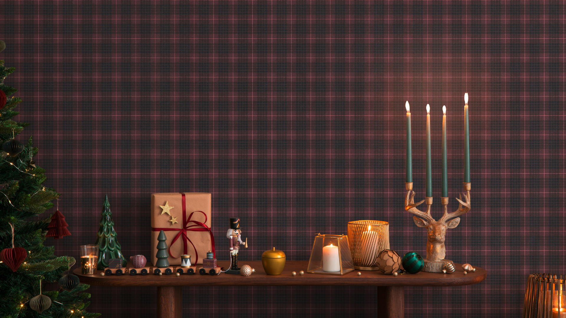 Timeless elegance meets festive warmth: the Heritage Christmas look focuses on elegant wallpapers that transform the room into a luxurious winter setting with classic patterns, deep colours and high-quality textures. Whether fine checks, elegant stripes or harmonious plain colours – the wall design gives the ambience a confident, high-quality look. Complemented by accents of dark wood, brass and warm fabrics, the result is a stylish, cosy Christmas feeling that combines tradition and class.